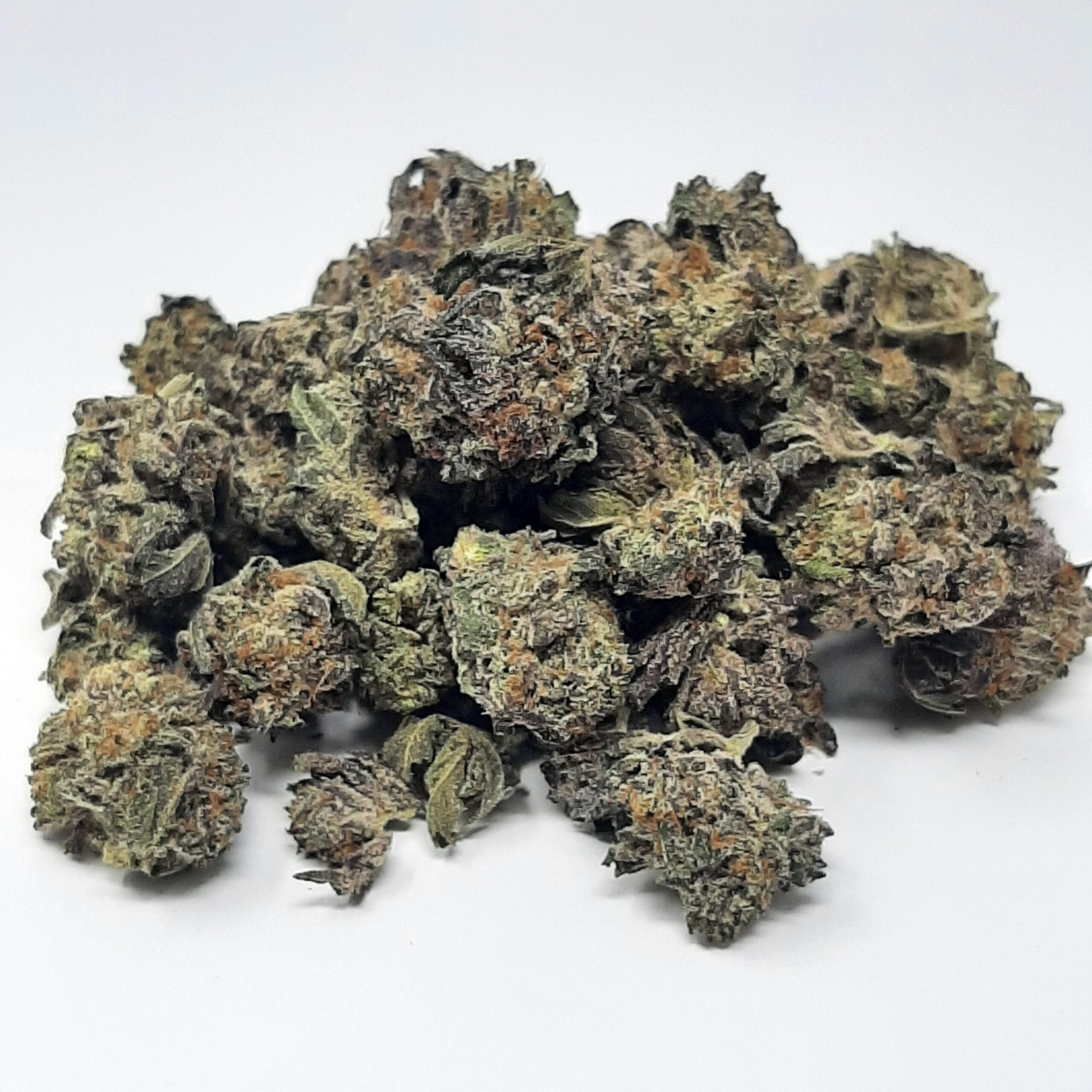 This bud has a super sweet and sour fruity berry flavor with a notable punch of mint upon exhale. The aroma follows the same profile, although with an earthy herbal effect that intensifies as the nugs are burned away. Bacio Gelato buds have small thick spade-shaped olive green nugs with dark purple undertones, vivid orange hairs and a coating of purple-tinted white crystal trichomes.