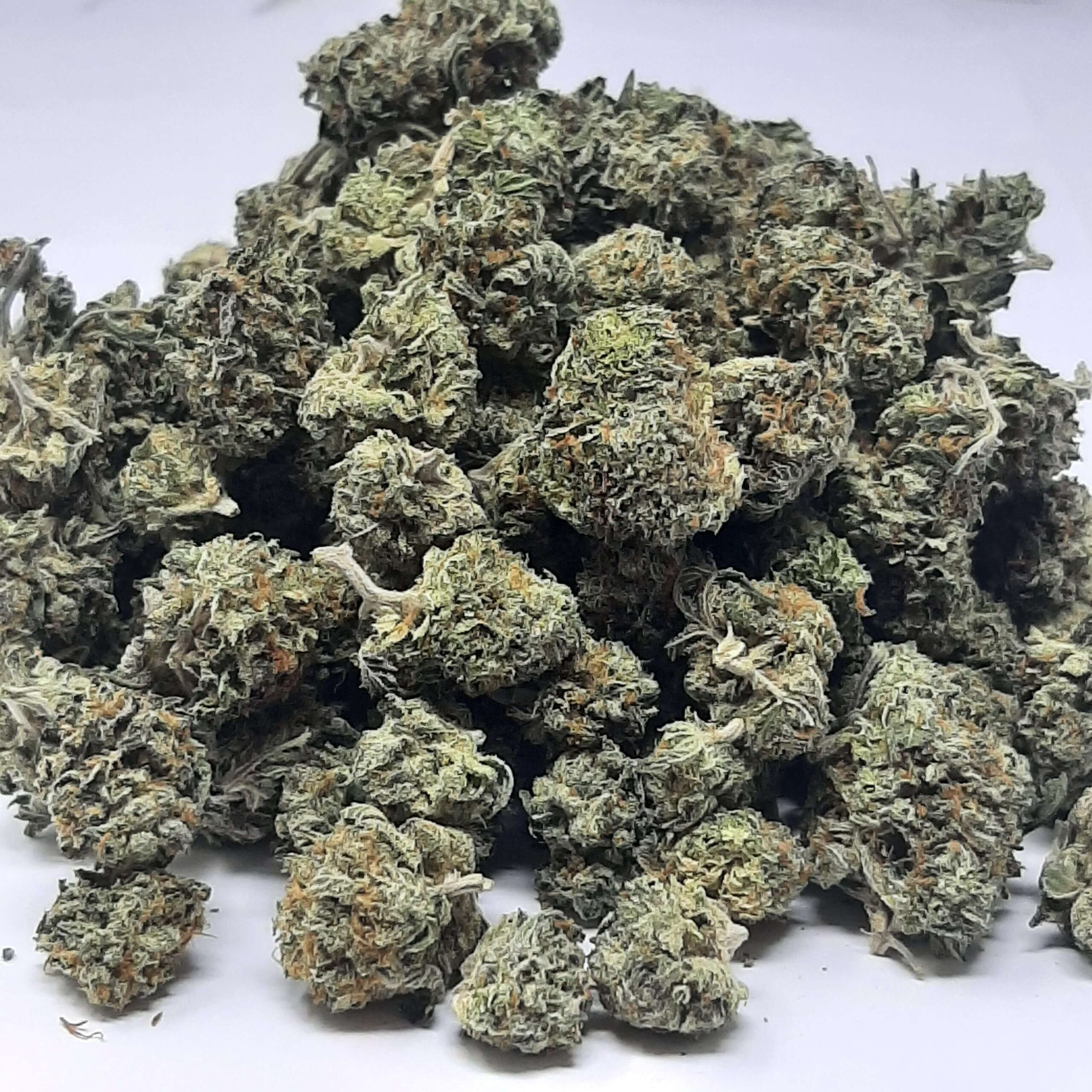 Pineapple Haze is a sativa dominant hybrid (70% sativa/30% indica) strain created as a cross between the insanely delicious PineappleX Haze strains. This bud has an intense and almost overpowering high that is fueled by a moderately high THC level of up to 19% on average. The aroma and taste of this bud are very deceptive, with a light sweet sugary pineapple citrus flavor with a hint of pine that has a hazy overtone when smoked. Don’t be tempted to smoke too much of this delicious bud at once – this bud is a one or two-hitter max. The onset hits you almost immediately with a euphoric and uplifted cerebral stimulation that gives you a jolt of creative energy with motivation to get outside and move. This cerebral energy has almost no ceiling and no sedative effects, making it perfect for outdoor activities like hiking or swimming. In fact, the only indica effect you’ll feel is a mild relaxation that leads to complete pain relief in both the mind and body. Because of these powerful uplifting effects, Pineapple Haze is often used to treat chronic fatigue, PTSD, mild to moderate cases of depression, and chronic pain. This bud has long dense dark forest green spade-shaped nugs with sparse light amber hairs and a completely frosted coating of milky white crystal trichomes.